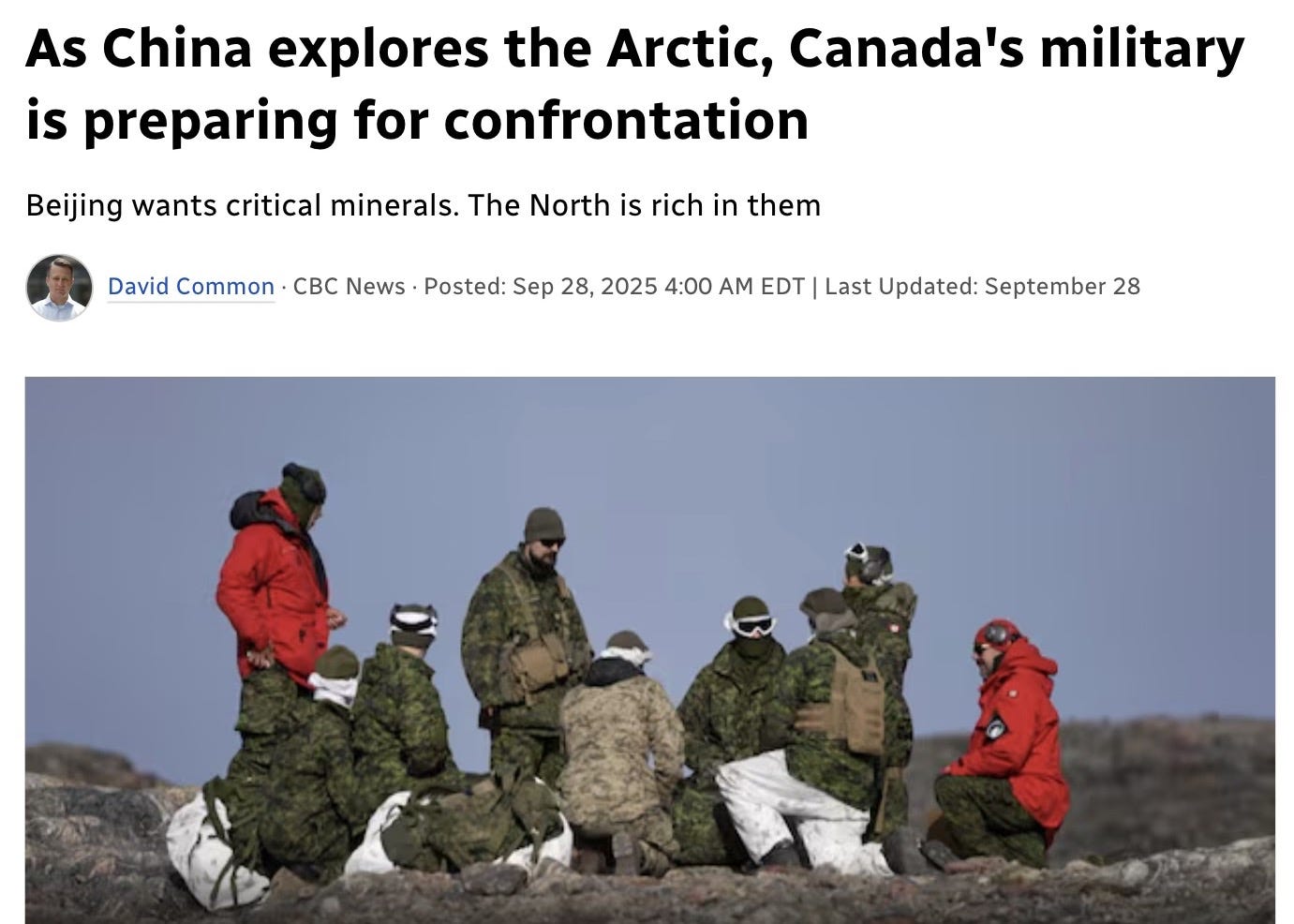 He explains that “the annual exercise is known as Operation Nanook,” which “took on particular significance this year with a collision of geopolitical changes: China’s growing ambition in the Arctic, Prime Minister Mark Carney’s plans to substantially increase the capabilities of the military and the newly recognized value of minerals in the North.”